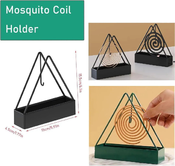 • Material: Stainless Steel • Number Of Pieces: 1 Pc • Product Feature: Affordable And Effective Solution • Color: Black • Package Includes: 1 x Mosquito Coil Stand • Note: There might be an error of 1-3 cm due to manual measurement, and slight color differences may occur as a result of varyin