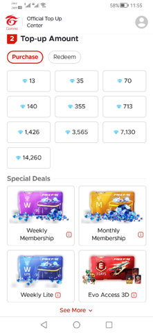 Rs 30 ke 13 diamonds Rs 60 ke 35 diamonds Rs 120 ke 70 diamonds Rs 230 ke 140 diamonds Rs 560 ke 355 diamonds Rs 1200 ke 713 diamonds Rs 2100 ke 1426 diamonds Weekly membership : Rs 400 Monthly membership: Rs 1700