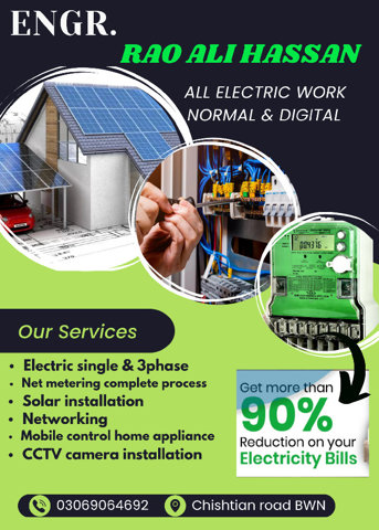 all electric work solar installation camera installation automatic electric work ghr ya office ki kisi b chez ko apny mobile sy control kry