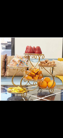 • Material: Iron • Number Of Pieces: 1 Pc • Color: Golden • Package Includes: 1 x Trays Set • Creative Home Wrought Iron Multi-layer Fruit Plate Living Room Dried Fruit Snack Cake Dessert Display Stand Storage Rack • Product Name: Fruit plate • Material: Iron • Size: as shown • Specificatio